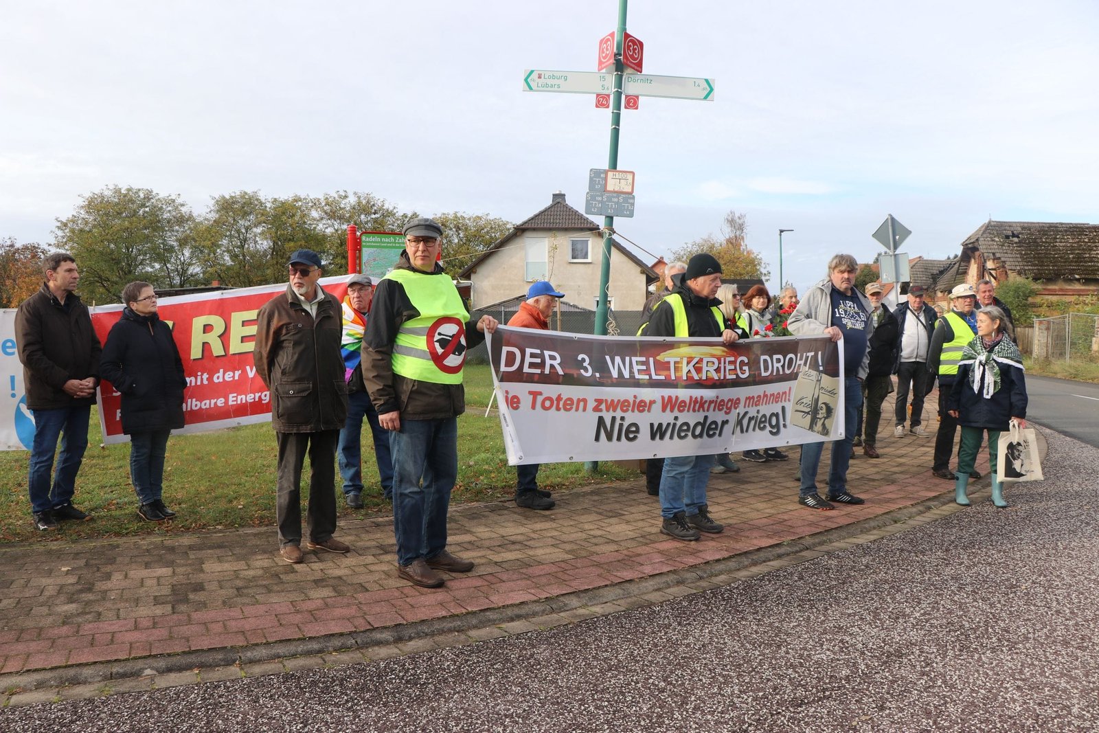 Der Treffpunkt war in der Nähe des Bahnhofs Altengrabow. Zum Friedensweg kamen etwa 40 Personen zusammen, einige darunter aus der Region. Der Treffpunkt war geschmückt mit Friedensbotschaften.