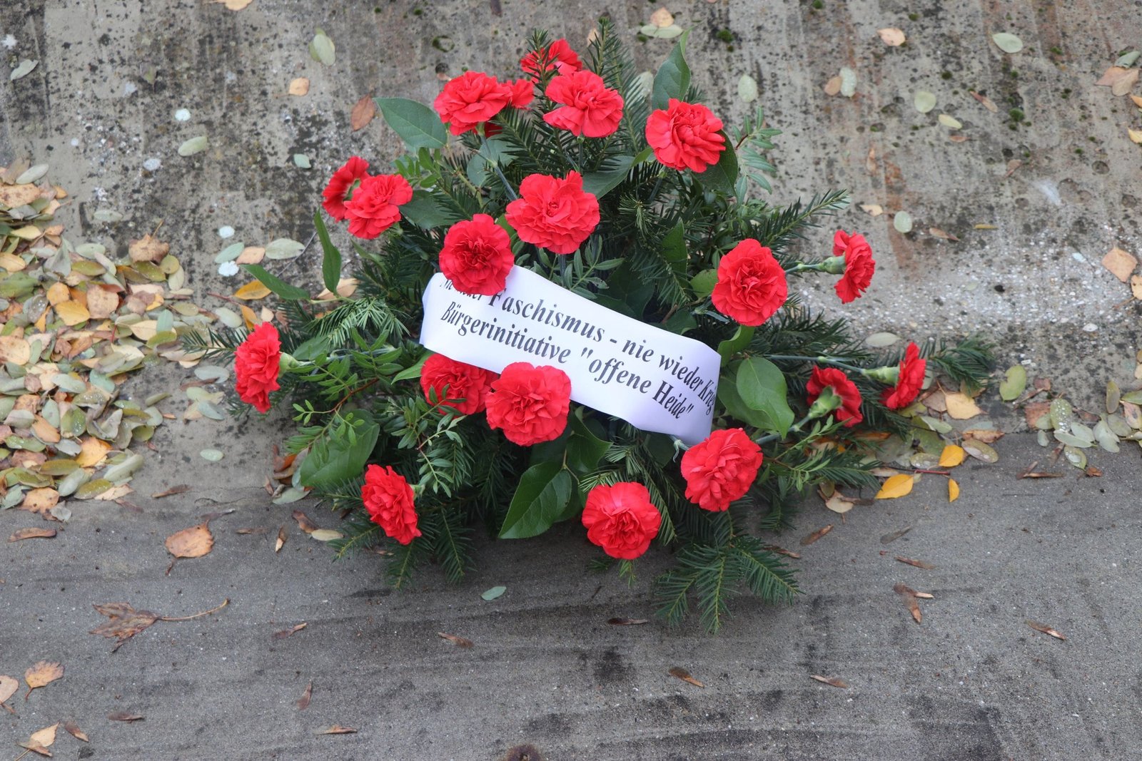 Nach der Auftaktkundgebung ging es auf die kurze Distanz zur Gedenkstätte Stalag XI A. Das Stalag XI A war von 1939 bis 1945 mit über 50.000 Insassen eines der größten Kriegsgefangenenlager in Mitteldeutschland. Viele Gefangene mussten in einer Munitionsfabrik arbeiten. Die Kundgebung an der Gedenkstätte wurde mit dem Niederlegen eines Blumengebindes verbunden. Auf der Schleife stand „Nie wieder Faschismus – nie wieder Krieg“. Sabine Zimmerhäkel trug eigene Gedichte wie das „Soldatenlied“ und von Wolfgang Borchert „Dann gibt es nur eins!“ vor. Davon zeigte sich Dr. Lothar Schröter tief beeindruckt, als er auf die anschließende Veranstaltung „Ukrainekrieg und Heimatschutz - zu Wurzeln des Krieges, den Akteuren und der weiteren Aufstellung eines Heimatschutzregimentes in Sachsen-Anhalt“ hinwies. Nils Rosenthal als Anwohner und Ökolandwirt brachte seinen Unmut über die ständig wachsende Präsenz der Bundeswehr in der Gegend zum Ausdruck. Diese verschlechtere die Lebensqualität der Anrainer. Altlasten aus Löschschäumen gefährden Umwelt und Grundwasser. Dabei hat die Gegend das Potenzial eines Erholungsgebietes. Es gab schon eine Aktion mit Luftballons gegen den Übungsbetrieb hier. Das Heimatschutzregiment soll hier auf dem Truppenübungsplatz Altengrabow stationiert werden. Auf dem Gelände waren schon viele neue Gebäude errichtet worden. Eine kleine Abordnung der Teilnehmenden brachte Post mit Standpunkten der Bürgerinitiative zum Briefkasten der Bundeswehr.