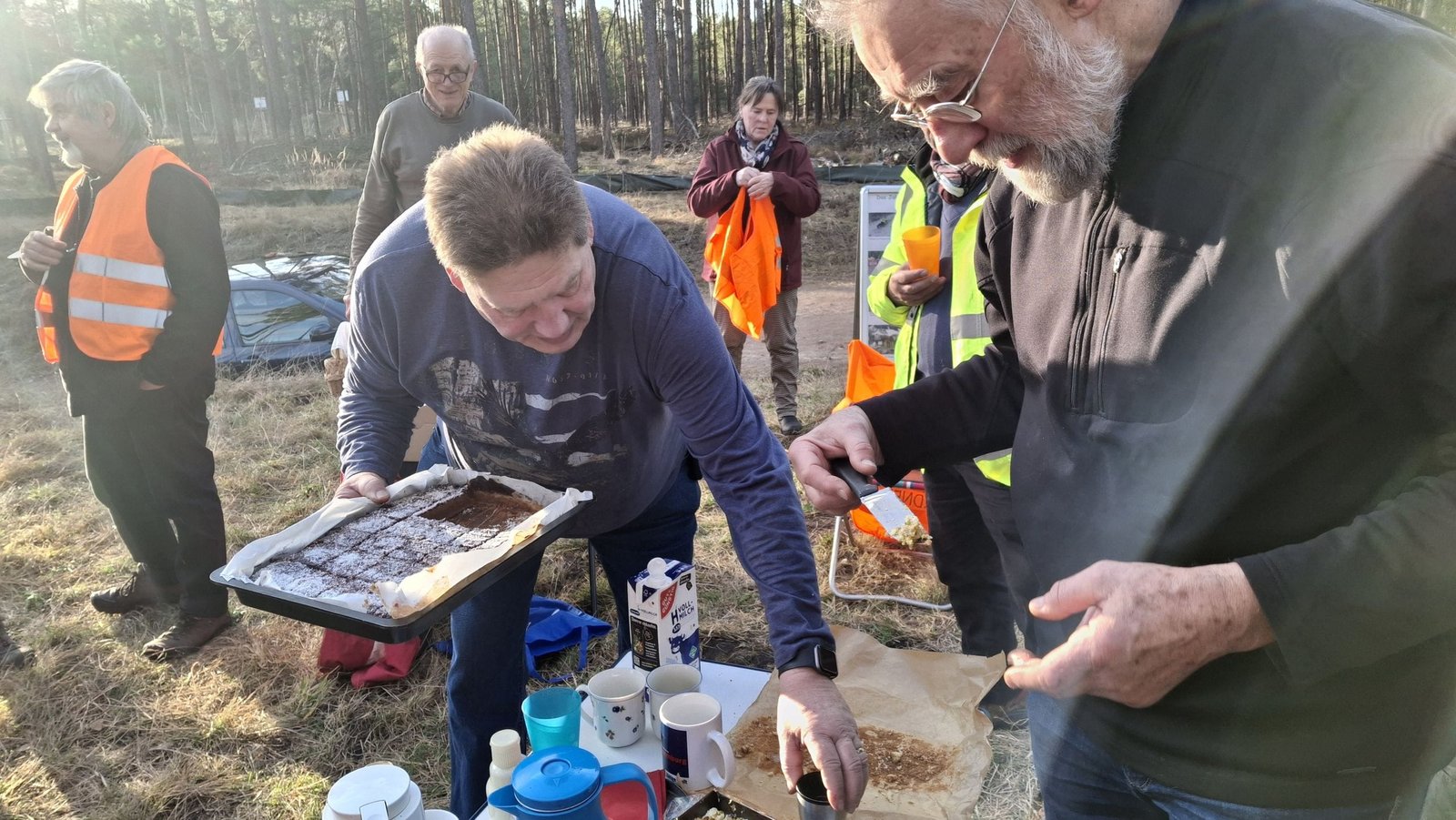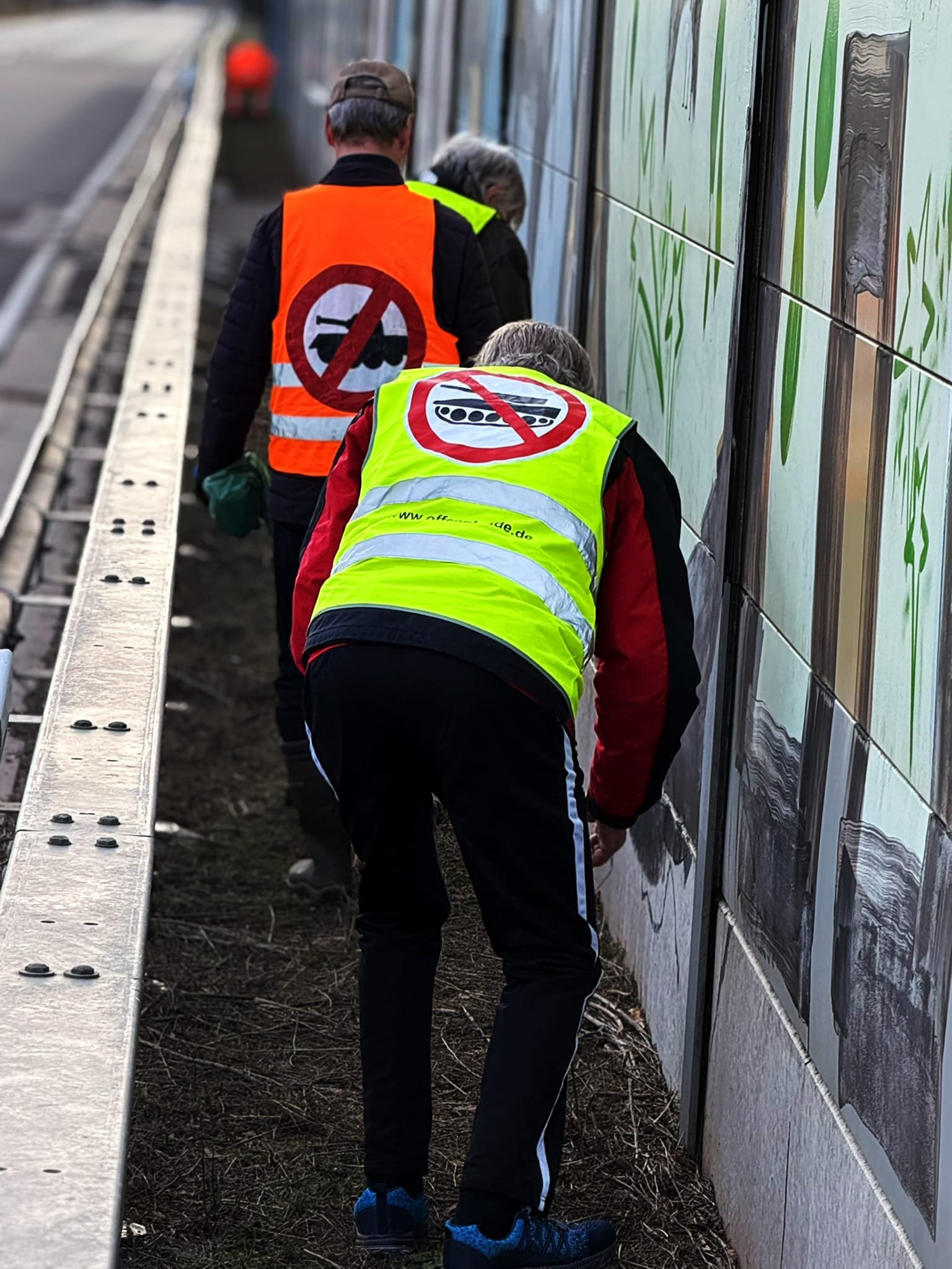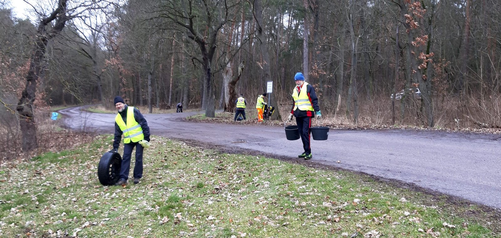 Also nehmen wir die Geschicke in die eigenen Hände und fangen am Rand der Landesstraße an. Einige ZeitgenossInnen missbrauchen die Heide als Müllkippe. Solch eine „zivile“ Nutzung ist uns zuwider.