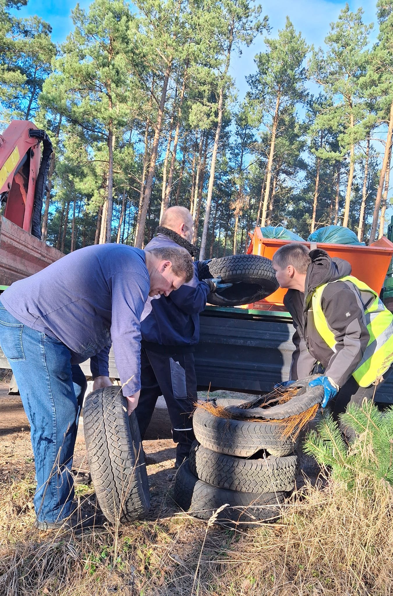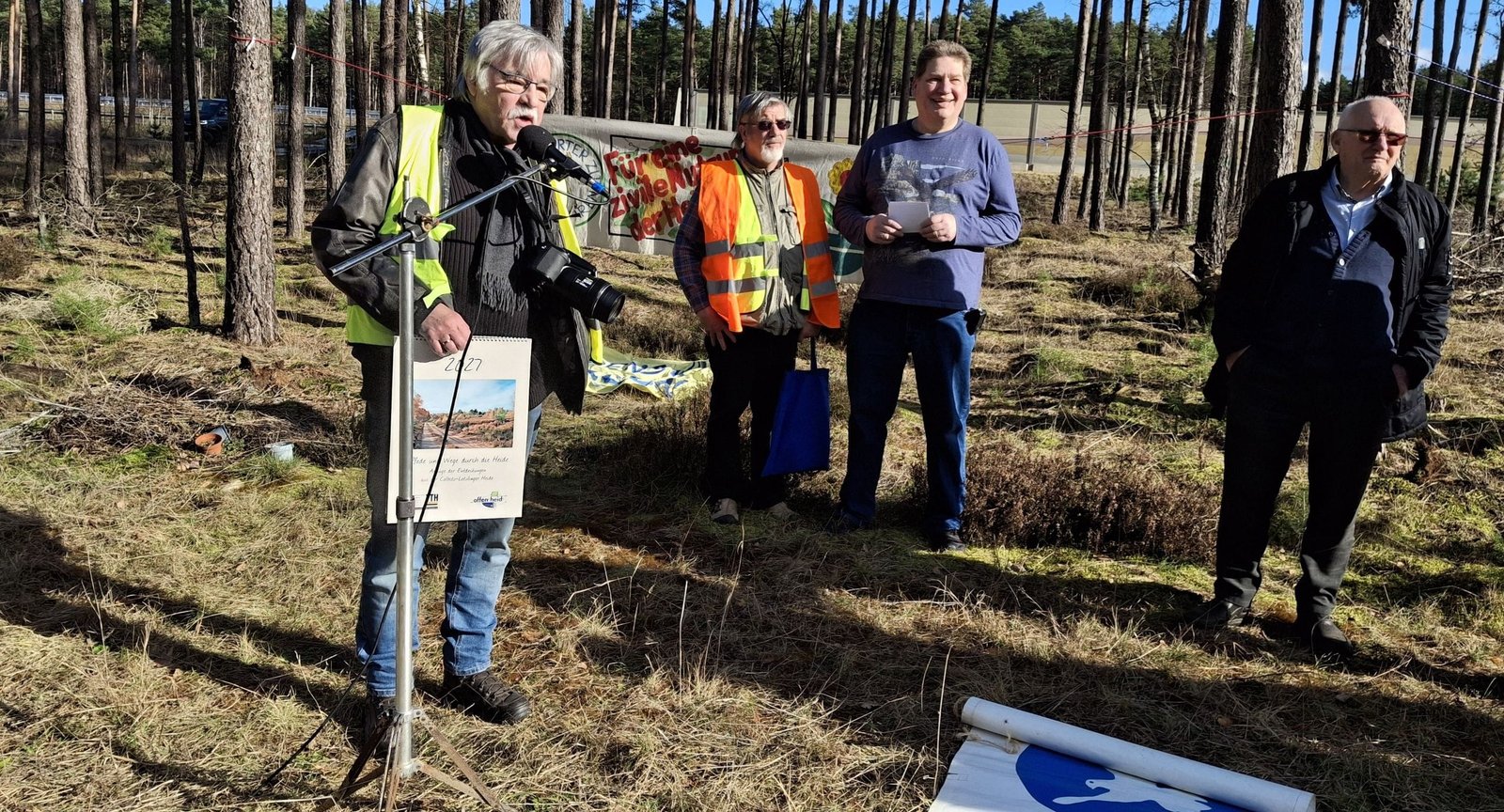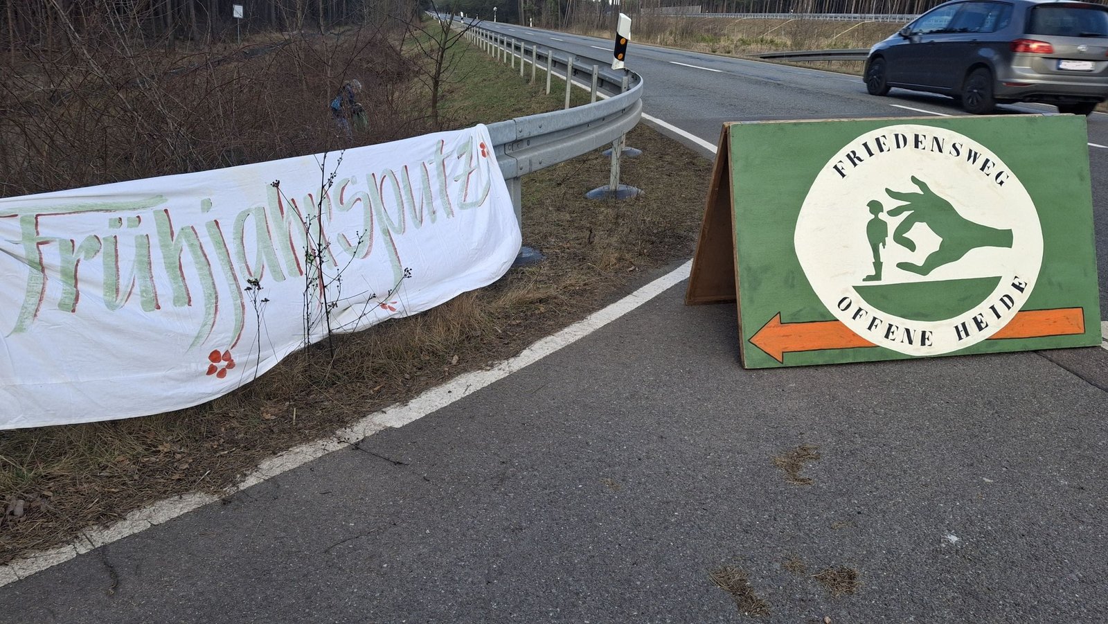 Also nehmen wir die Geschicke in die eigenen Hände und fangen am Rand der Landesstraße an. Einige ZeitgenossInnen missbrauchen die Heide als Müllkippe. Solch eine „zivile“ Nutzung ist uns zuwider.