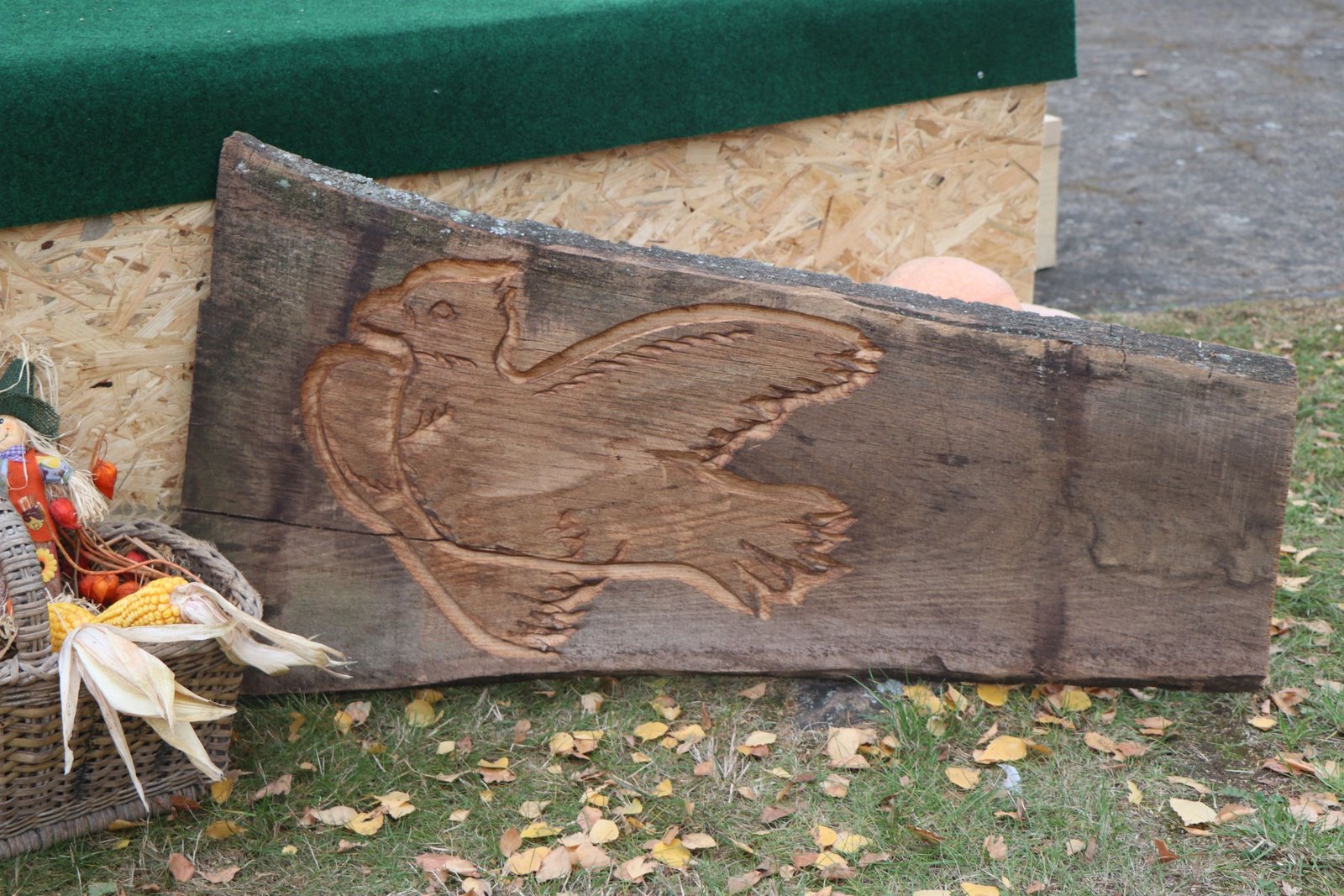 Am Stand der OFFENen HEIDe gab es einige Gespräche und es wurden neue Kontakte geknüpft. Kettensägekünstler Olaf Jensen übergab der Bürgerinitiative ein Holzrelief mit der Friedenstaube.