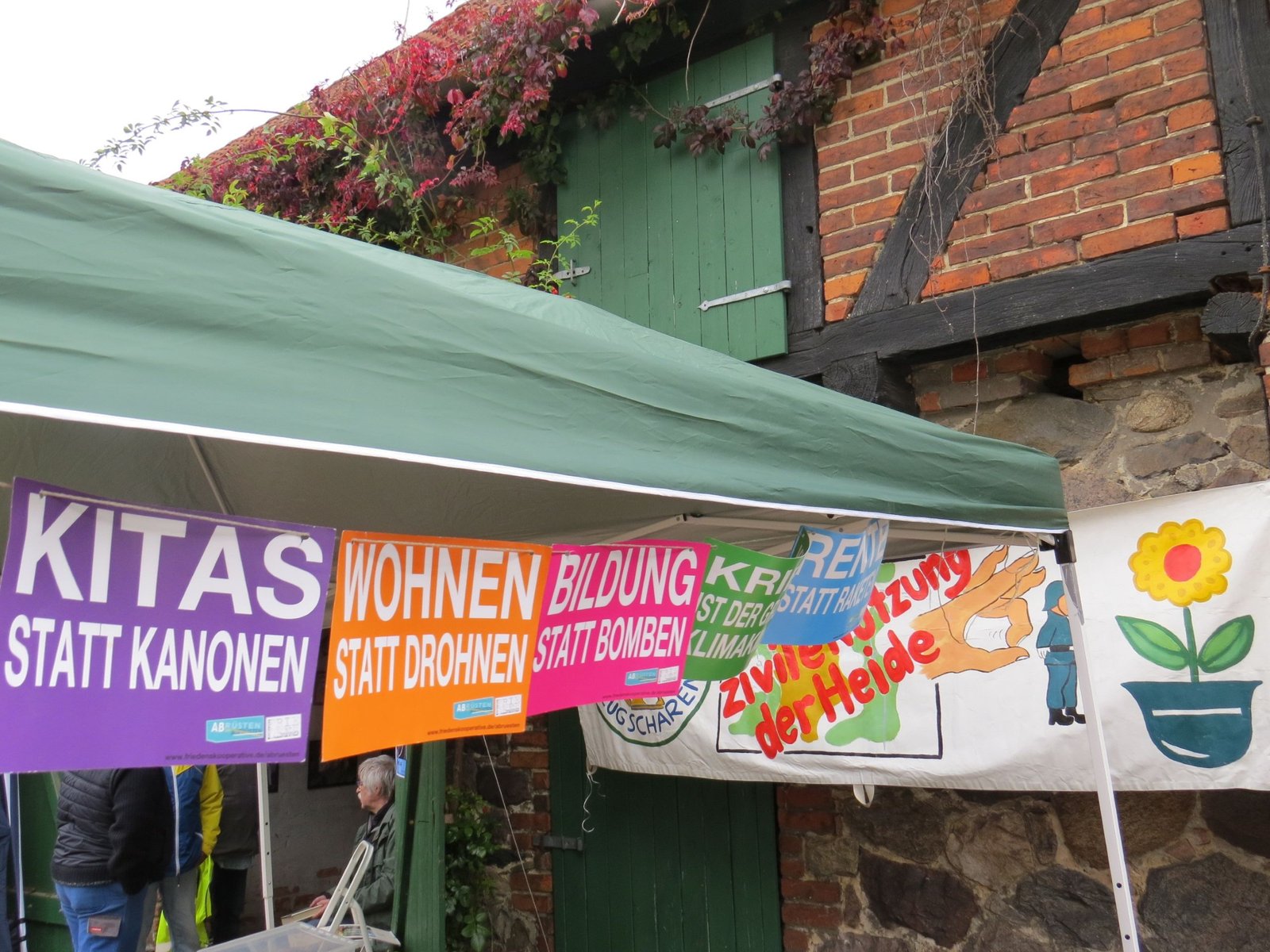 Der Herbst war zu spüren, so wurde erst am frühen Morgen des Sonntags mit dem Aufbau zum Hoffest begonnen, denn das Wetter am Vortag war stürmisch und regnerisch. Es war das 20. Hoffest in Lindhorst und somit ein Jubiläum. Auf dem Hoffest war die OFFENe HEIDe wieder mit einem Informationsstand dabei und half beim Auf- und beim Abbau. Wegen des Wetters war der Besucherandrang nicht so stark wie sonst üblich.